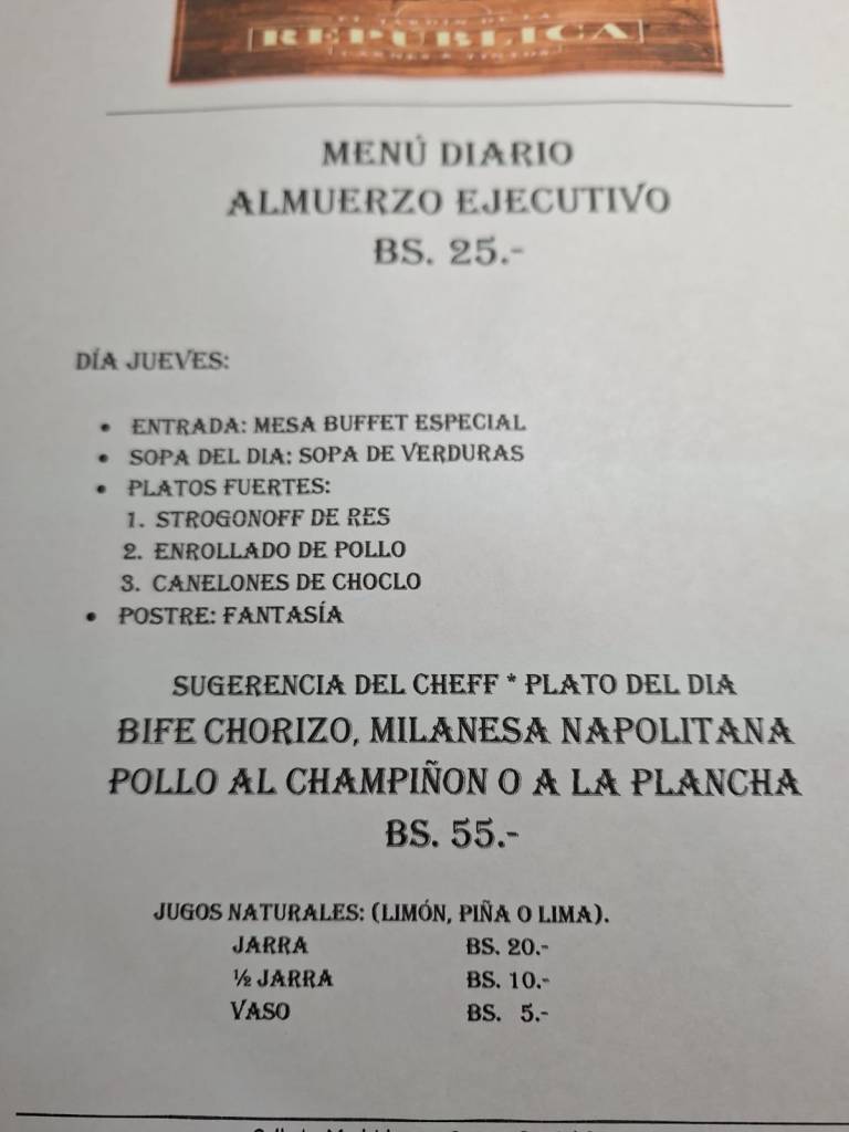 Menú inigualable, precio accesible y un agradable ambiente para este jueves 28 de Noviembre, que incluye mesa buffet y postre. Jugos naturales a elección.