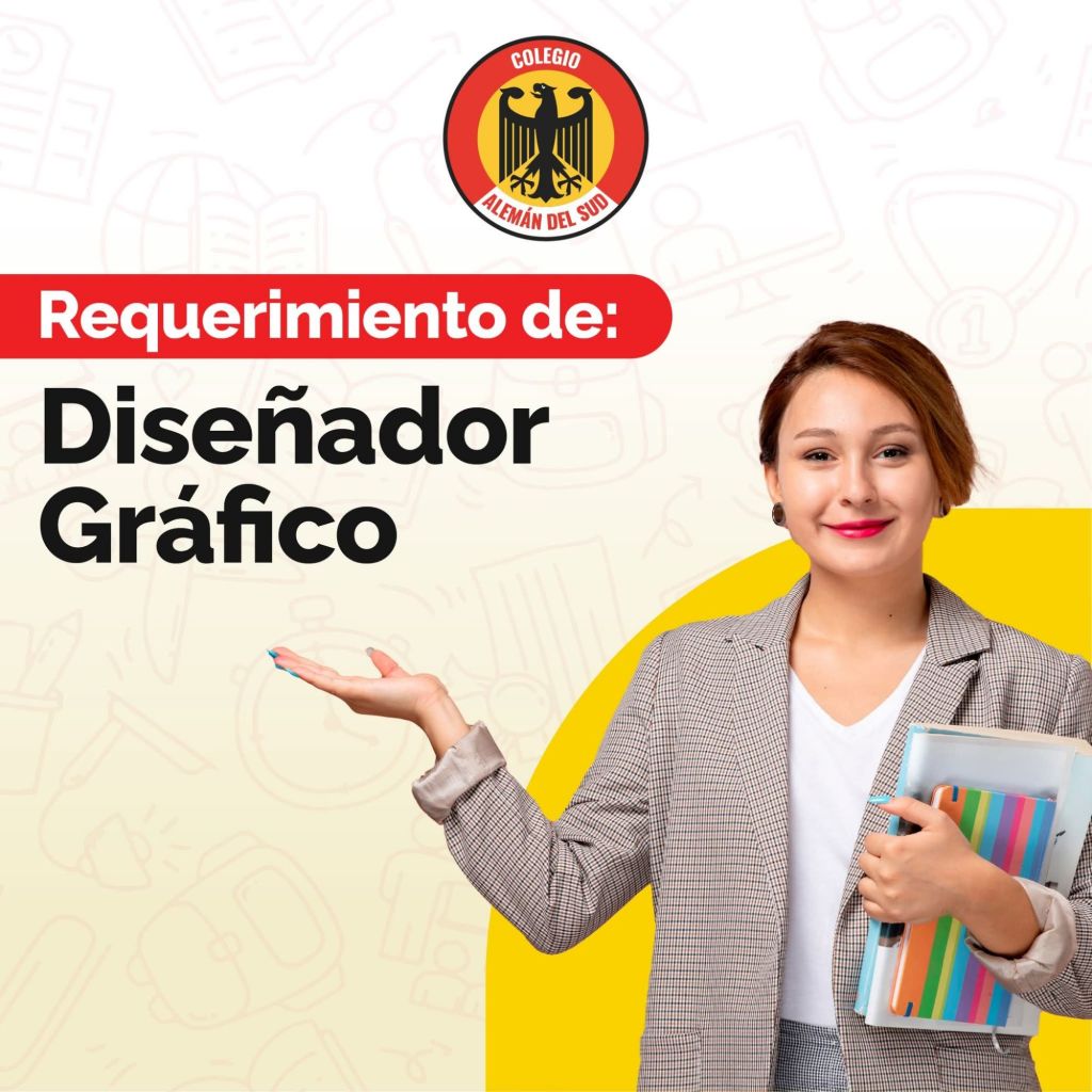 7. Colegio Alemán del Sud requiere un DISEÑADOR GRÁFICO con disponibilidad de tiempo completo, dominio de Photoshop, Illustrator e InDesign, además de conocimientos en edición de video. Interesados envíar Curriculum Vitae y portafolio al correo electrónico e.yujra@castja.edu.bo
