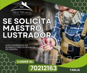 9. Empresa "Qué Muebles" requiere Maestro Lustrador, con experiencia en hacer acabados finos. Interesados comunicarse al 70212163
