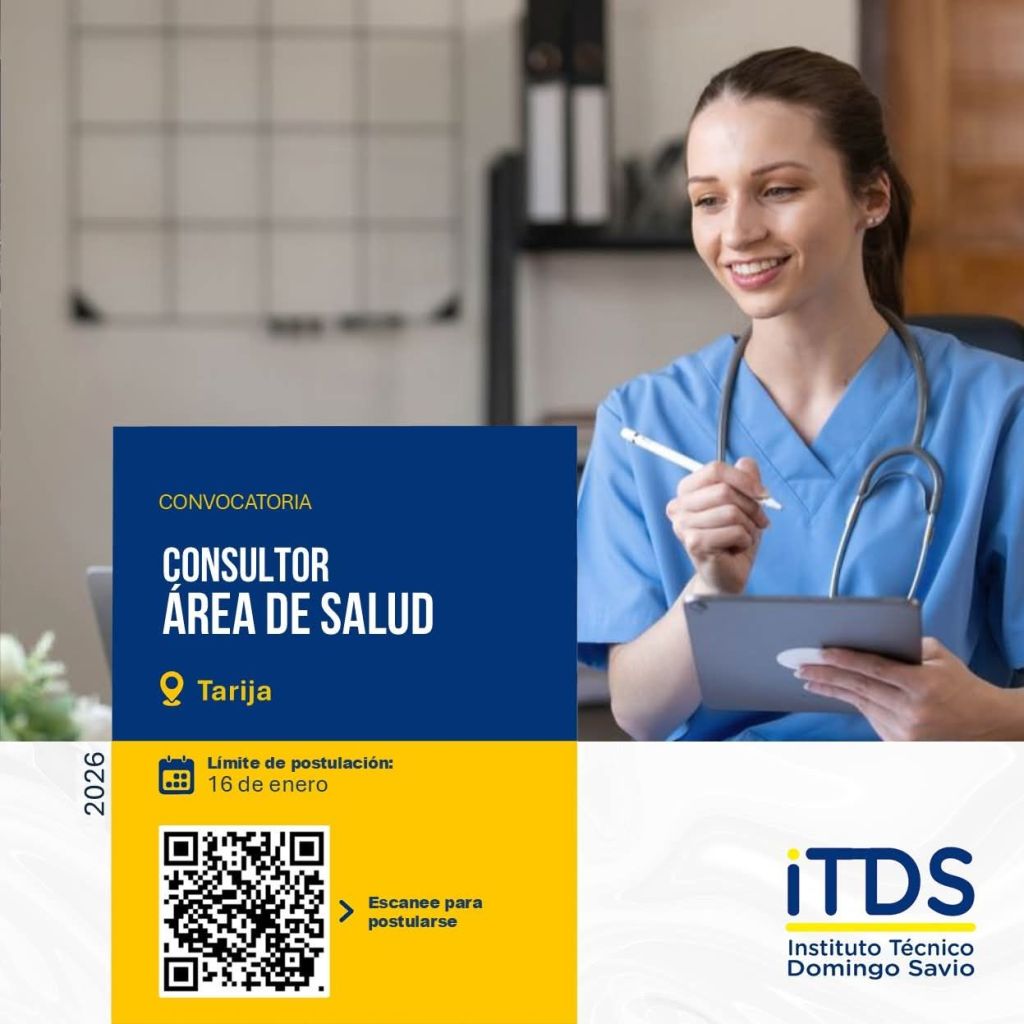 4. INSTITUTO TÉCNICO DOMINGO SAVIO requiere en #Tarija un(a) profesional Consultor de Área de Salud para apoyar los procesos académicos del área de salud.