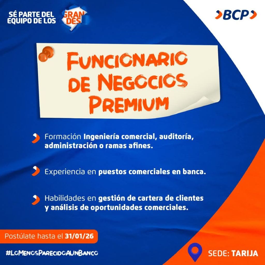 11. BCP requiere Funcionario de Negocios Premium. Plazo de postulación hasta el 31 de enero. Interesados postular en el siguiente enlace: