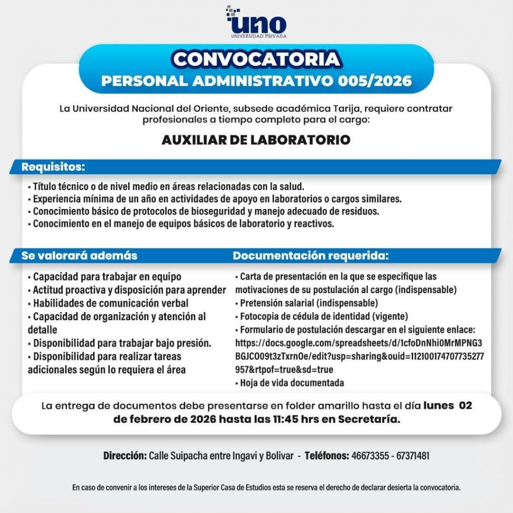 14. La Universidad UNO requiere Auxiliar de Laboratorio. Interesados sujetarse a la Convocatoria pública 👇