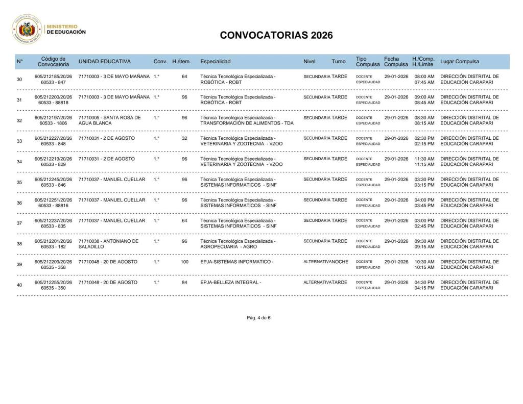 4. La Dirección Departamental de Educación Tarja invita a Maestras, Maestros, profesionales y a toda la comunidad educativa a revisar y postular a las Convocatorias 2026, vigentes en el departamento de Tarija. Interesados en postular, hacer click en el siguiente enlace: