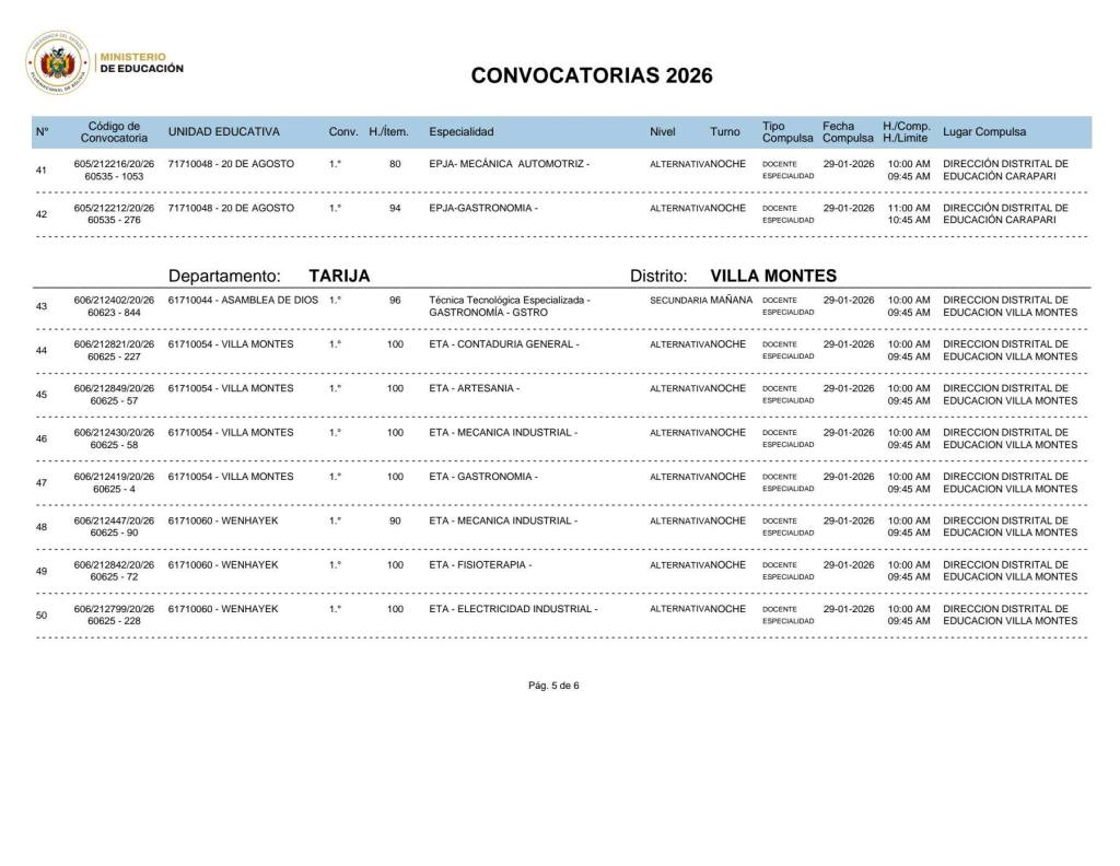 5. La Dirección Departamental de Educación Tarja invita a Maestras, Maestros, profesionales y a toda la comunidad educativa a revisar y postular a las Convocatorias 2026, vigentes en el departamento de Tarija. Interesados en postular, hacer click en el siguiente enlace:
