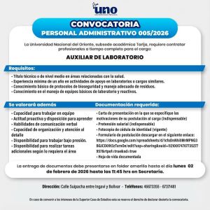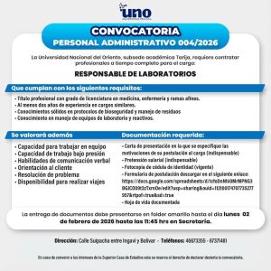 6. La Universidad UNO requiere Responsable de Laboratorios. Interesados sujetarse a la Convocatoria pública 👇