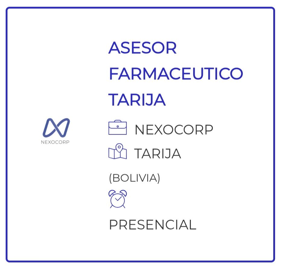 2. Farmacia Artesanal requiere Visitador Médico en Tarija. Un profesional egresado de Farmacia o Bioquímica, con Licenciatura en Bioquímica, Farmacia, Medicina o ramas afines, y experiencia mínima de 1 año en el cargo. Interesados enviar Curriculum Vitae actualizado, con foto y pretensión salarial al correo electrónico: comercial@farmacia-artesanal.com.bo