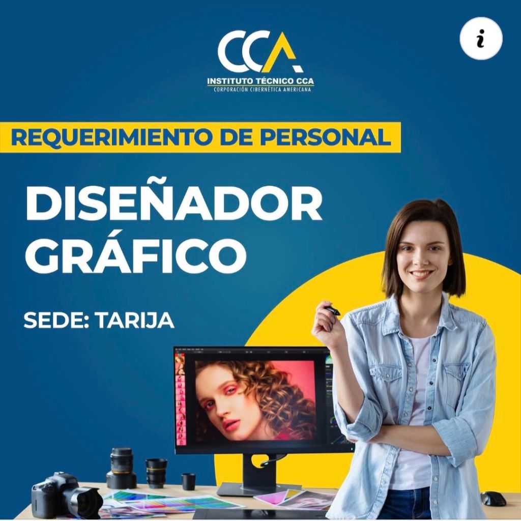 5. Instituto Técnico CCA requiere en Tarija, Diseñador(a) Gráfico Publicitario. Interesados postular enviando su book o portafolio al correo electrónico: