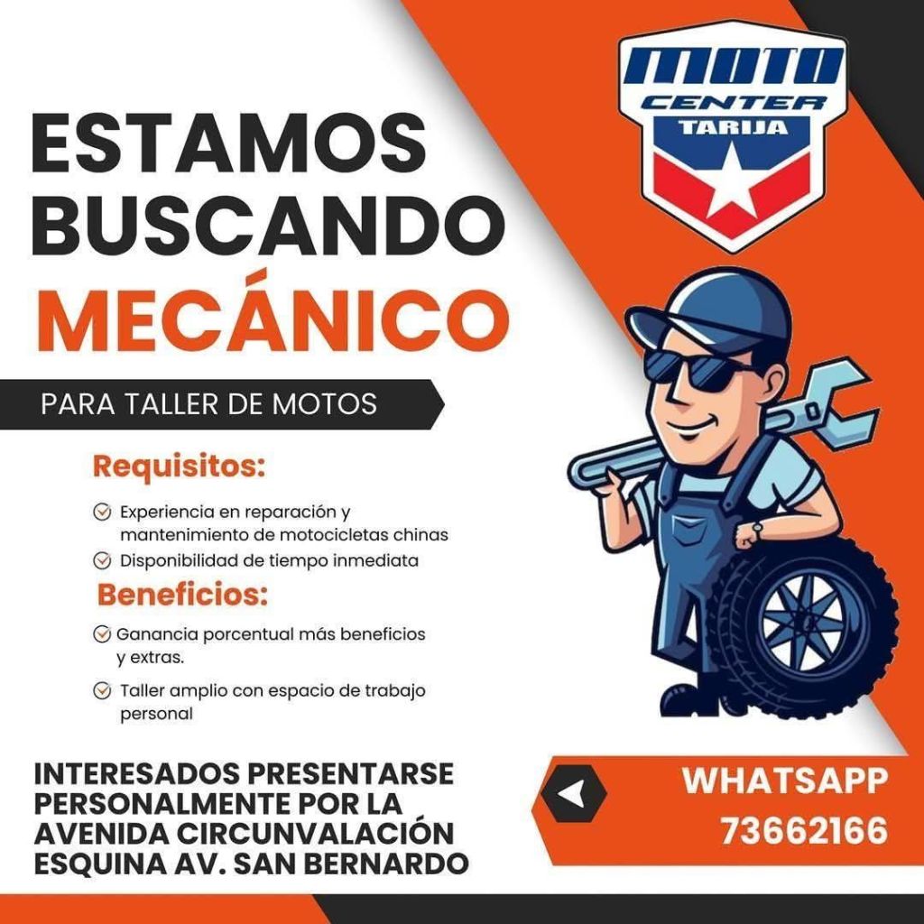 30. Se requiere un Mecánico Automotriz con experiencia, para el Barrio Villa Avaroa. Taller mecanico bien equipado. Interesados comunicarse al 73483034