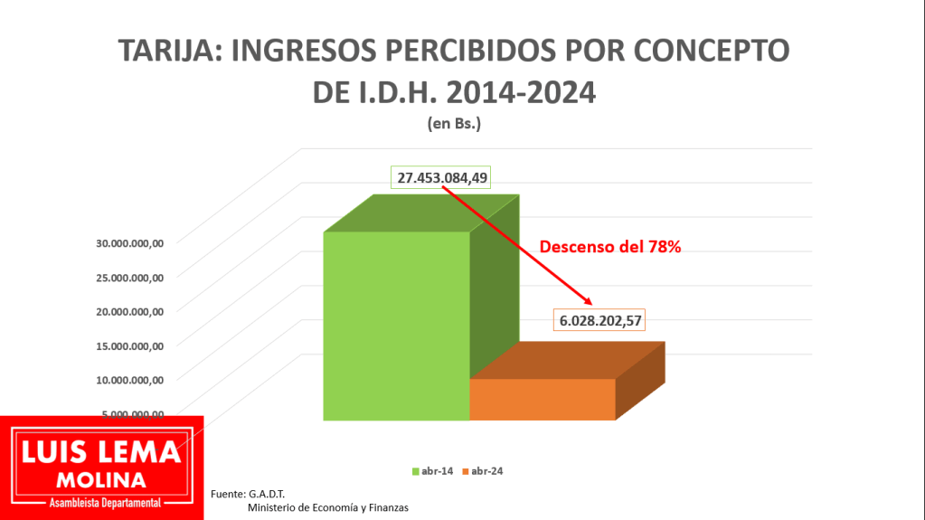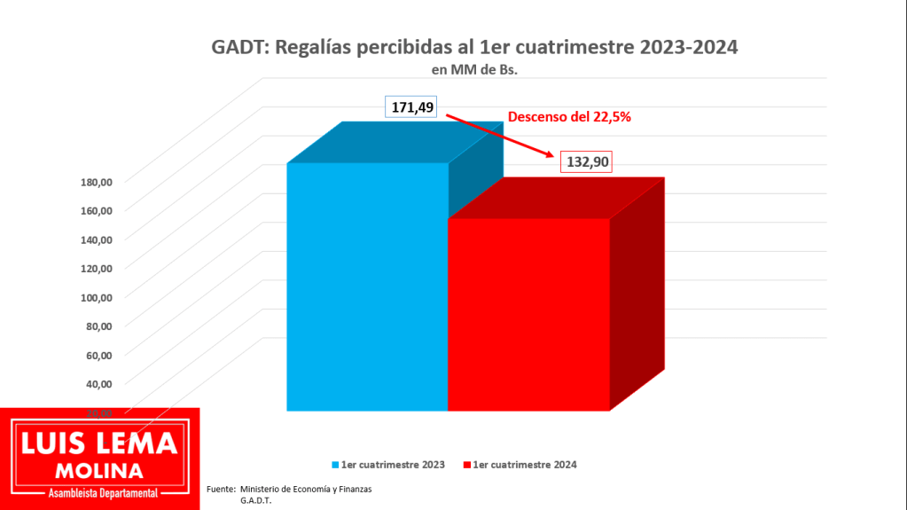 El asambleísta departamental, Luis Lema Molina, confirmó con un amplio informe, el descenso departamental en la producció y exportación de hidrocarburos, y la consiguiente disminución de ingresos y regalías al departamento y al país.