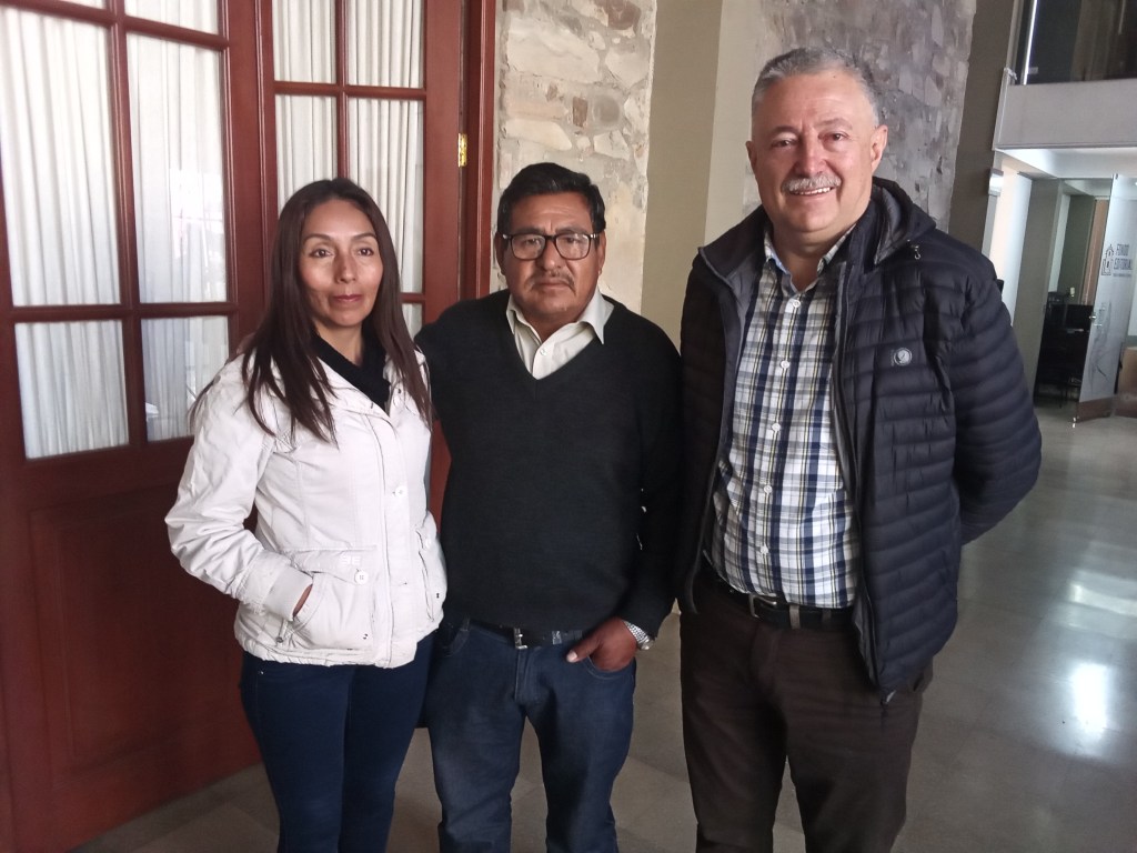 Dirigentes de la FEDJUVE y el concejal Fernando Castellanos Echazú.