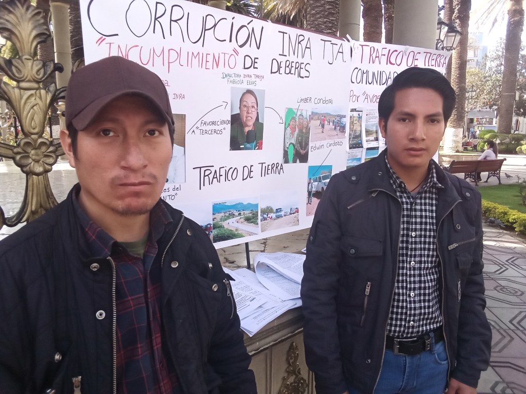 La actual Directora Departamental del INRA, Evelin Fabiola Elías Arroyo y los funcionarios Daniela Laguna, Limbert Condori y Edwin Cardozo, han sido señalados públicamente por Rolando Romero, comunario de Yesera Sur, como promotores y defensores de avasalladores en su comunidad.